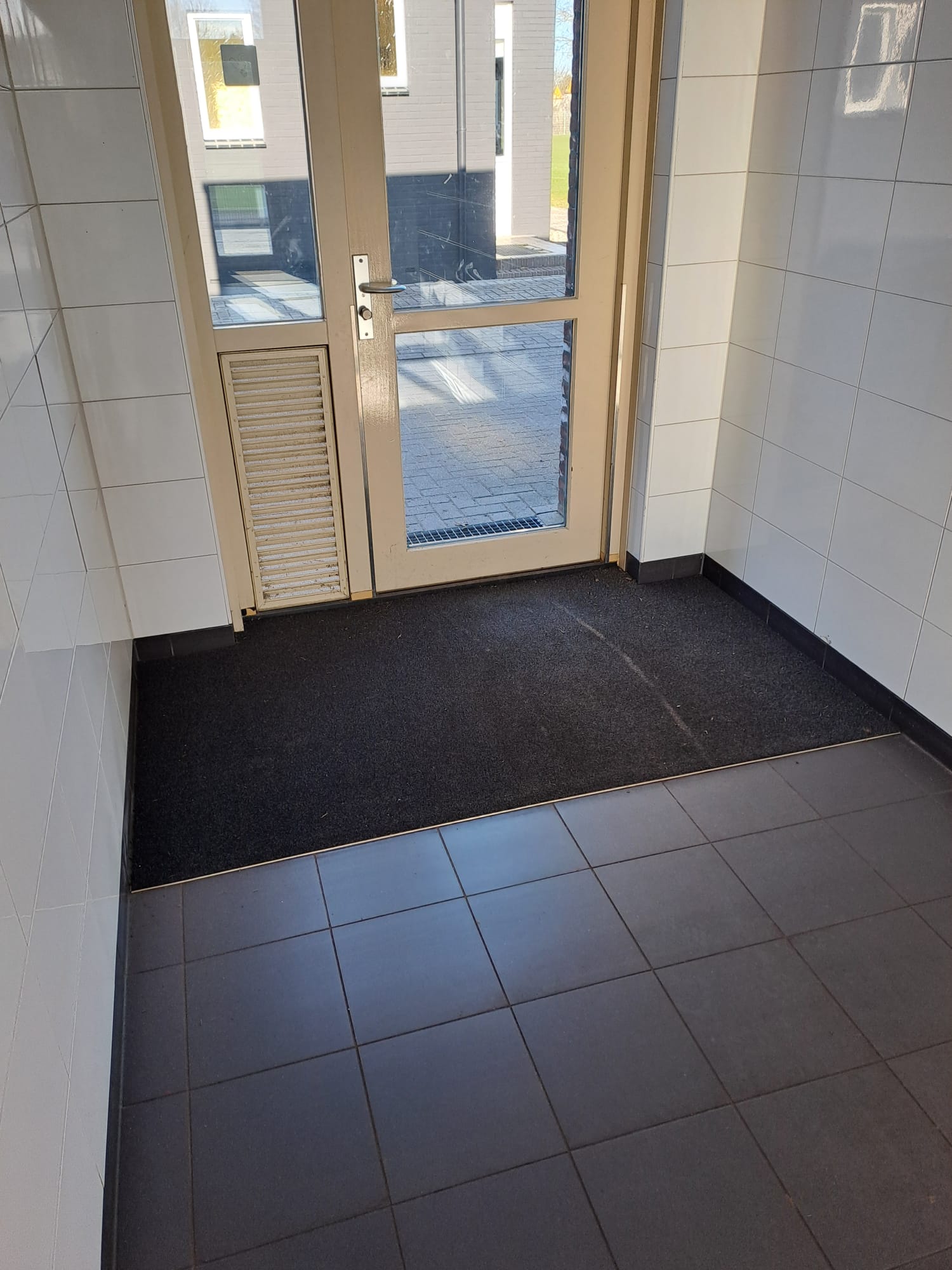 De oude droogloopmatten waren aan vervanging toe en na contact met Vloerenspecialist Leushuis uit Vriezenveen zijn deze matten gratis geleverd!